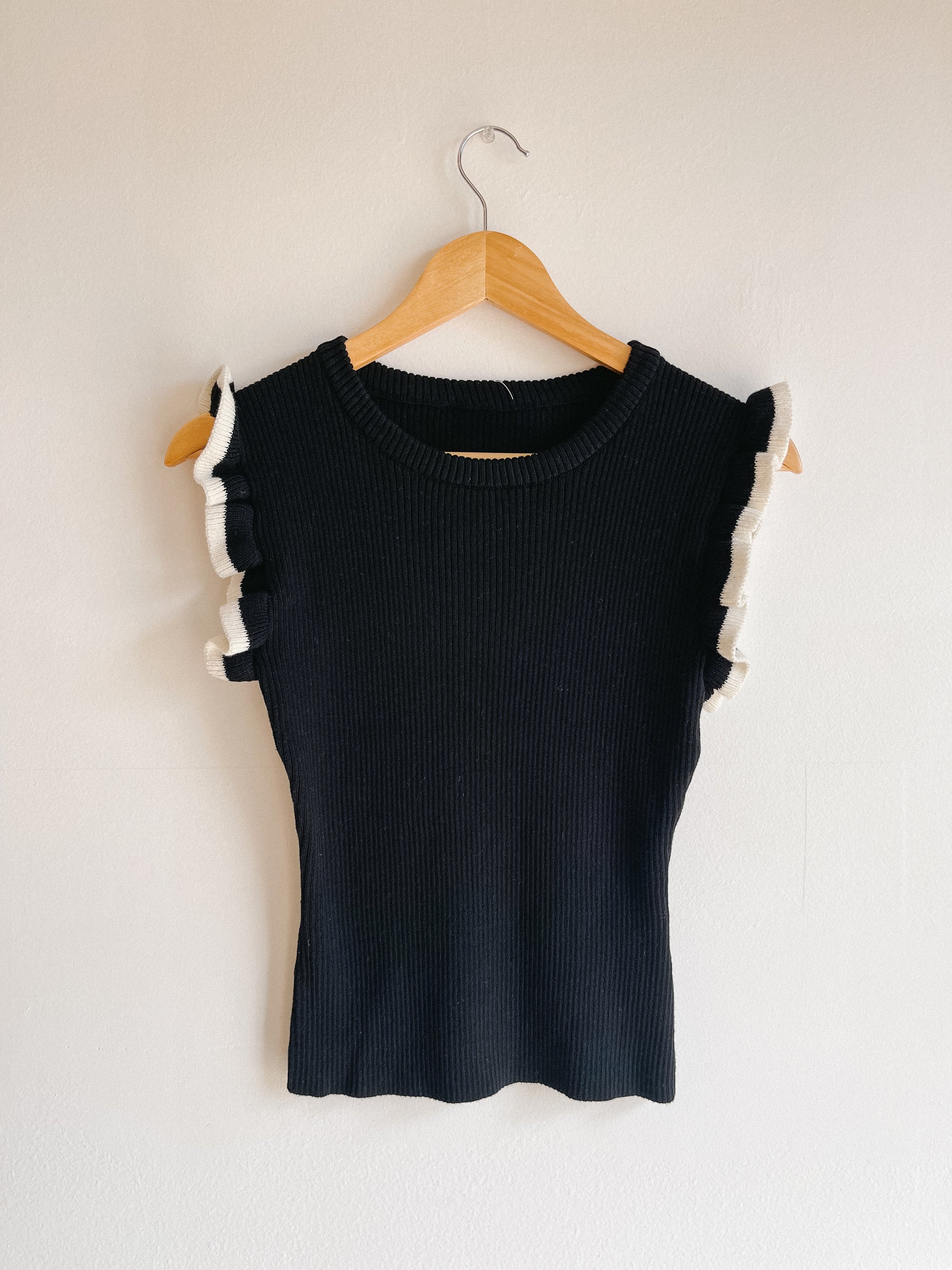 Black Contrast Ruffle Sleeve Top
