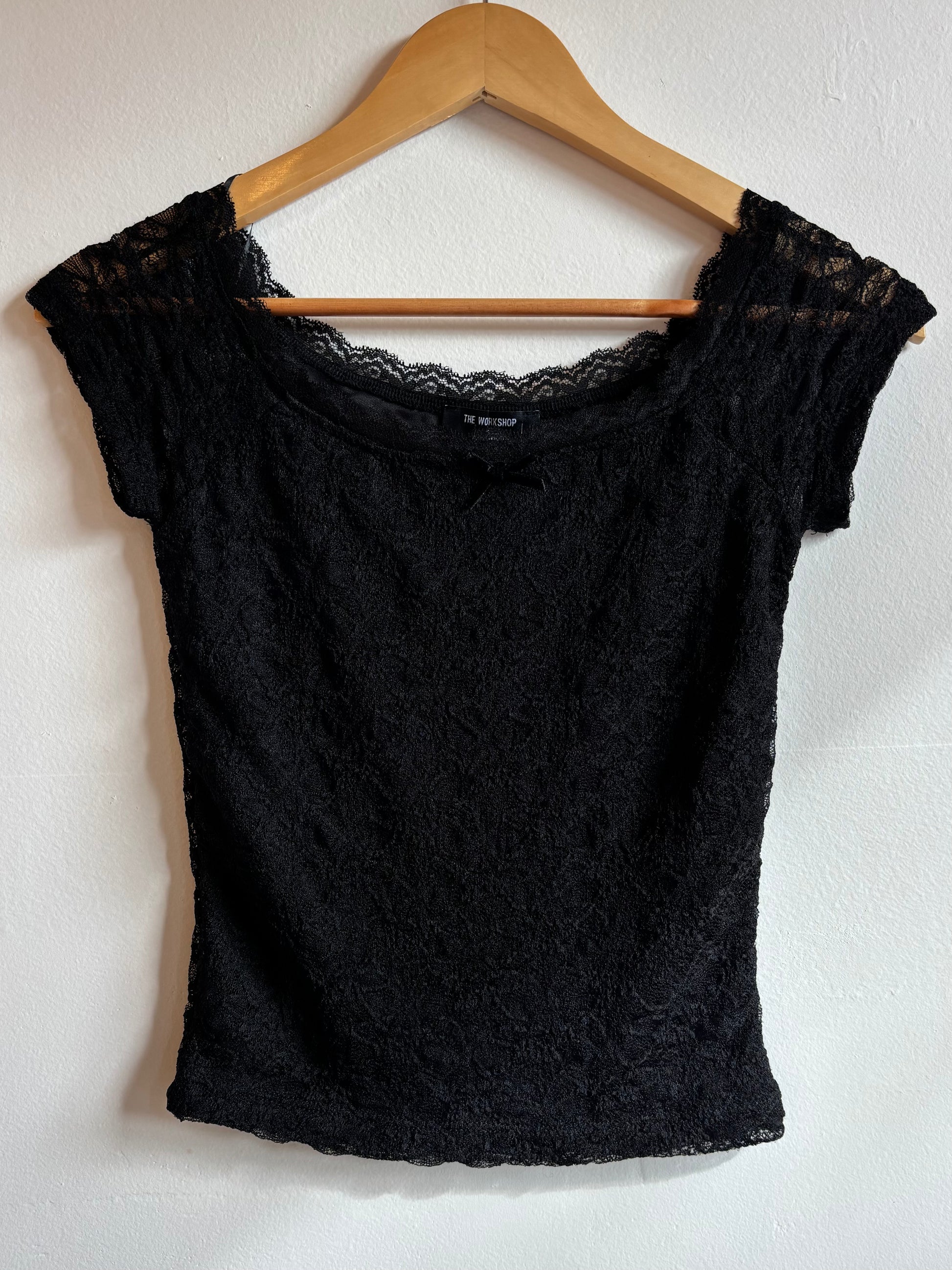 Black Lace Bow Short Sleeve Top